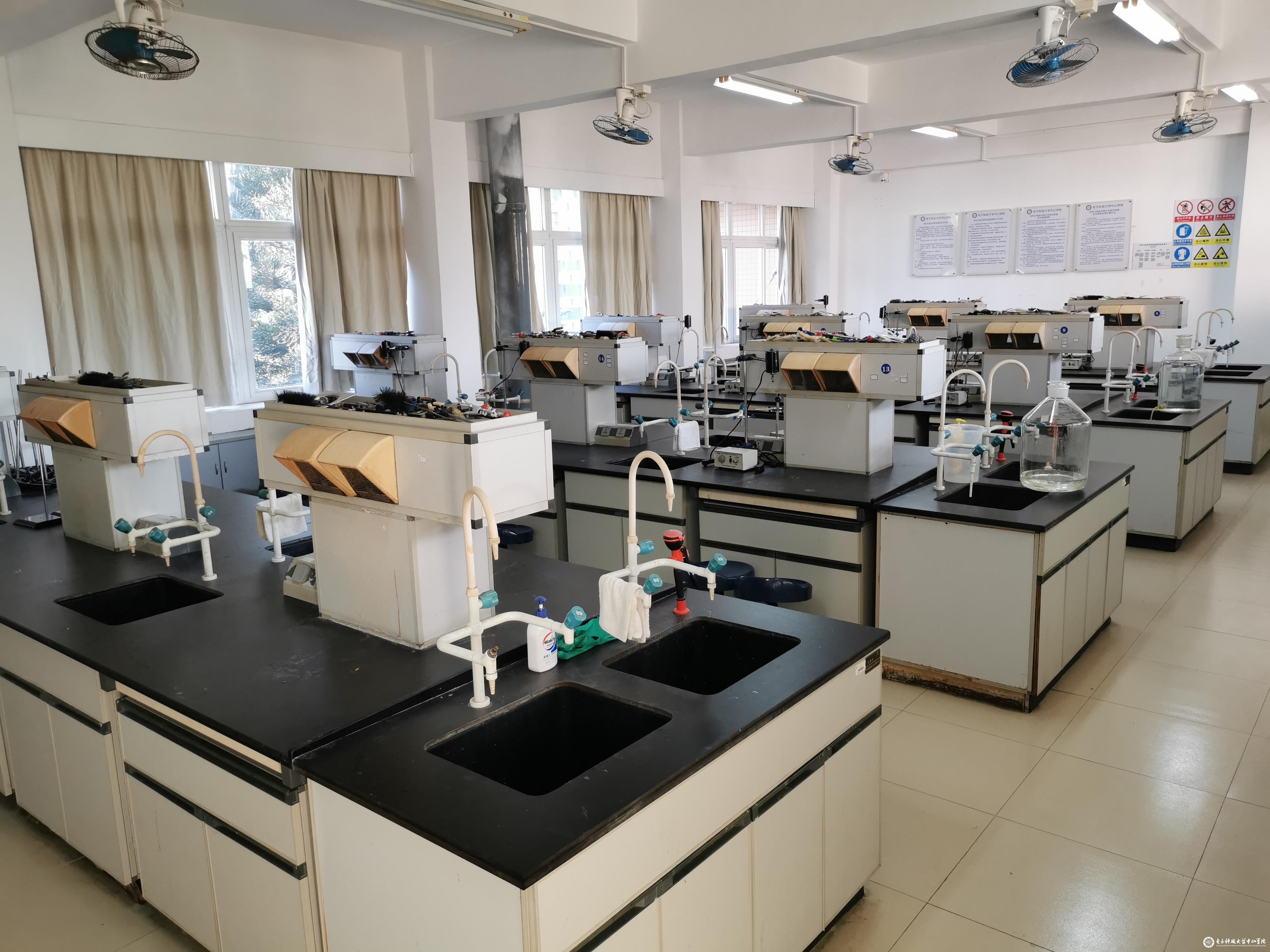 药物化学实验室位于1-602,面积110平方米,容纳实验人数48人。是一间把基本实验、综合实验、毕业论文、科学研究等有机结合的多功能实验室。实验室现有人员8人,其中教授2人,副教授2人,讲师3人,实验员1人。实验室面向生物工程、生物技术等专业的学生。实验室主要承担药物化学、药物分析及中药制剂分析的实验教学任务。实验室实行对学生开放制度,允许学生在本实验室进行药物化学、药物分析方面的毕业设计工作。主要仪器设备有:智能药物溶出仪、自动永停滴定仪、显微熔点仪等。