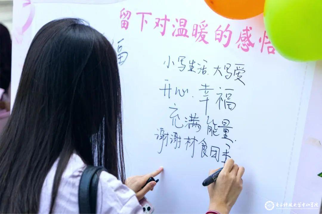 此外,活动现场还设置了留言板,收件人们纷纷写下暖心的话语,表达对学院的感谢、对友谊的珍视以及对生活美好的期许。纸短情长,同学们的感言,传递出彼此深厚的情谊,感染了在场的每一个人。