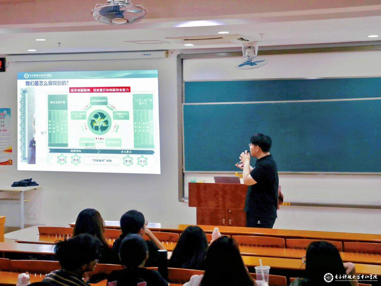 王老师还向同学们介绍了学校创新创业发展历程,培养目标课程体系等内容,鼓励同学们在大学期间积极与老师和学长学姐交流经验,要勇于踏出舒适圈尝试,多思考、多参与、多实践,与同学和师长携手合作,共同创造出具有竞争力的产品项目。