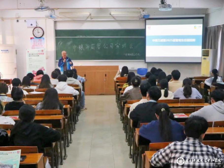 中粮万威客公司于12月2日下午在4-109开展企业宣讲会。中粮万威客公司人事副经理阳萍、生产管培生李嘉媚、sunbet申博,申博官网,sunbet官网党总支书记陈永强、辅导员袁雪莹、张莹莹及2021级毕业生共100余人参与此次宣讲会。